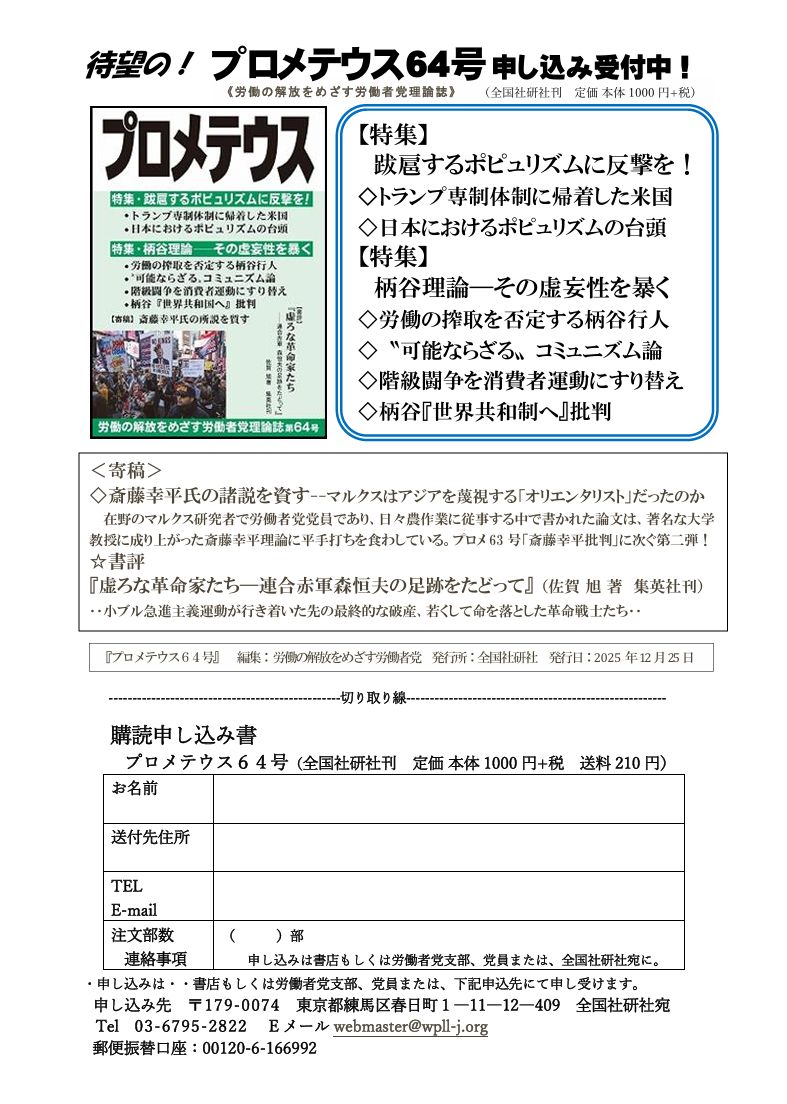労働者党理論誌『プロメテウス』64号発行さる!